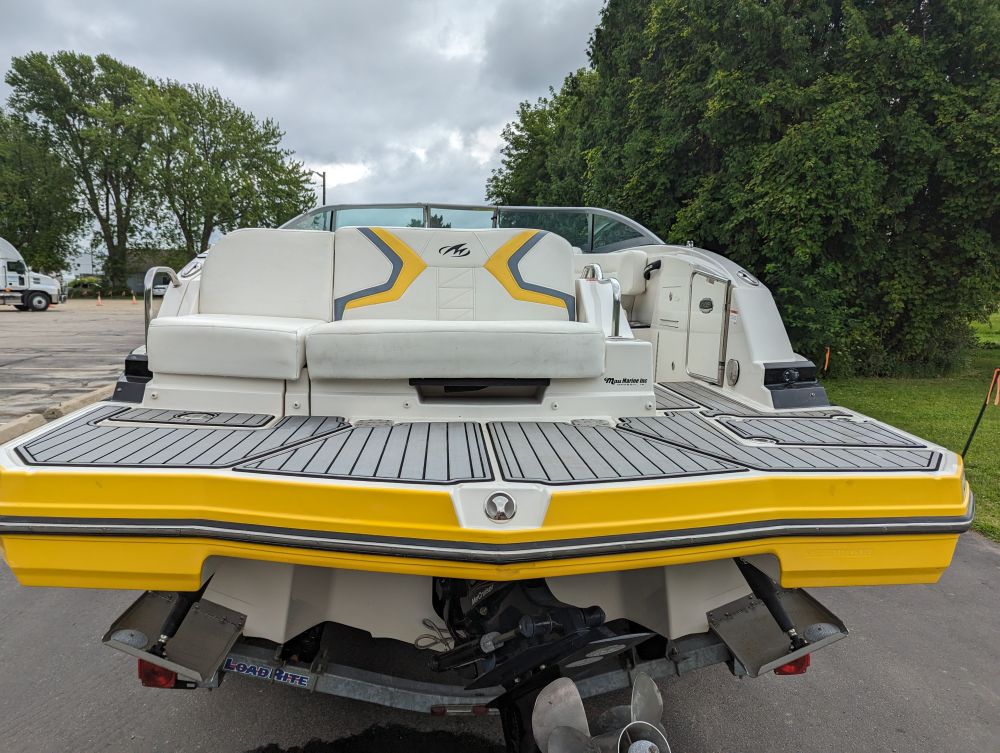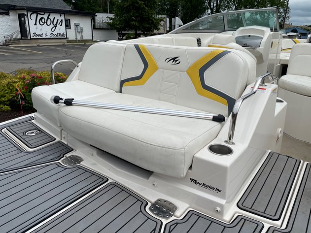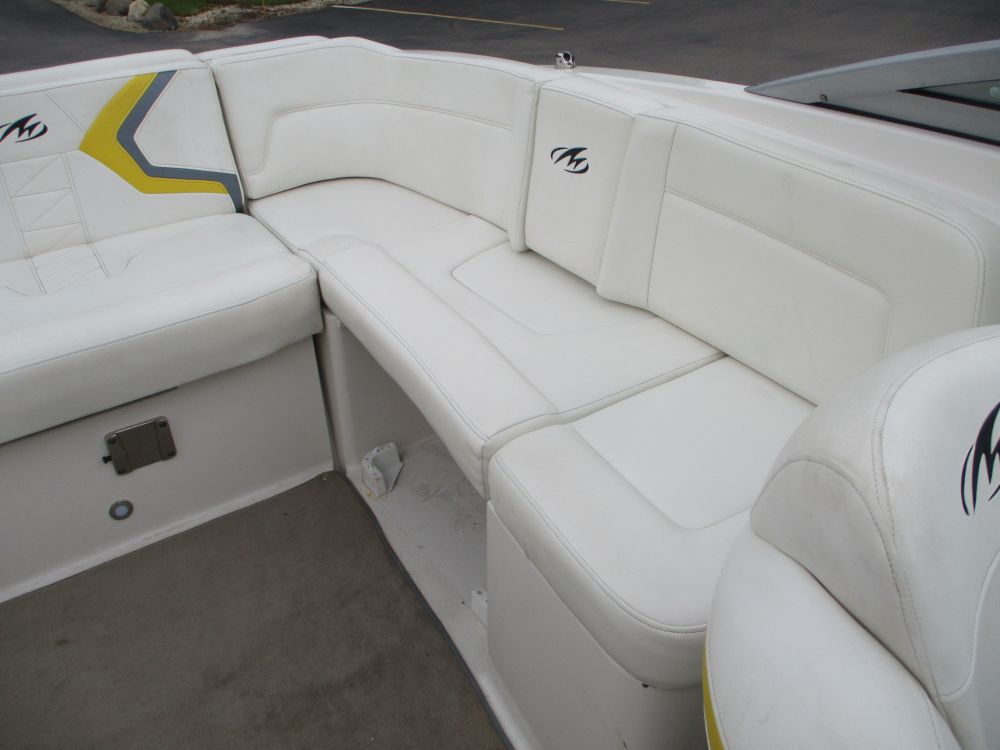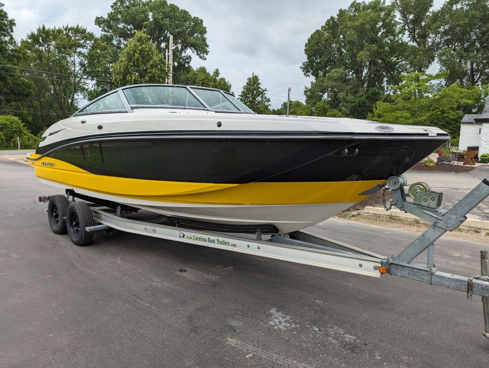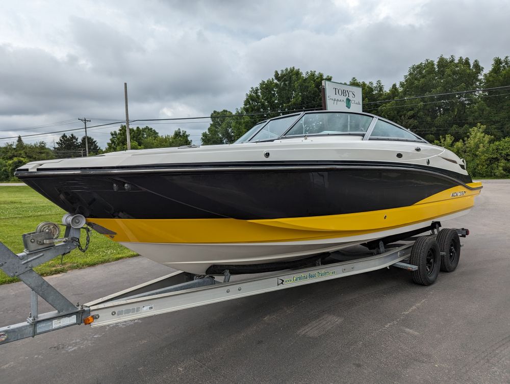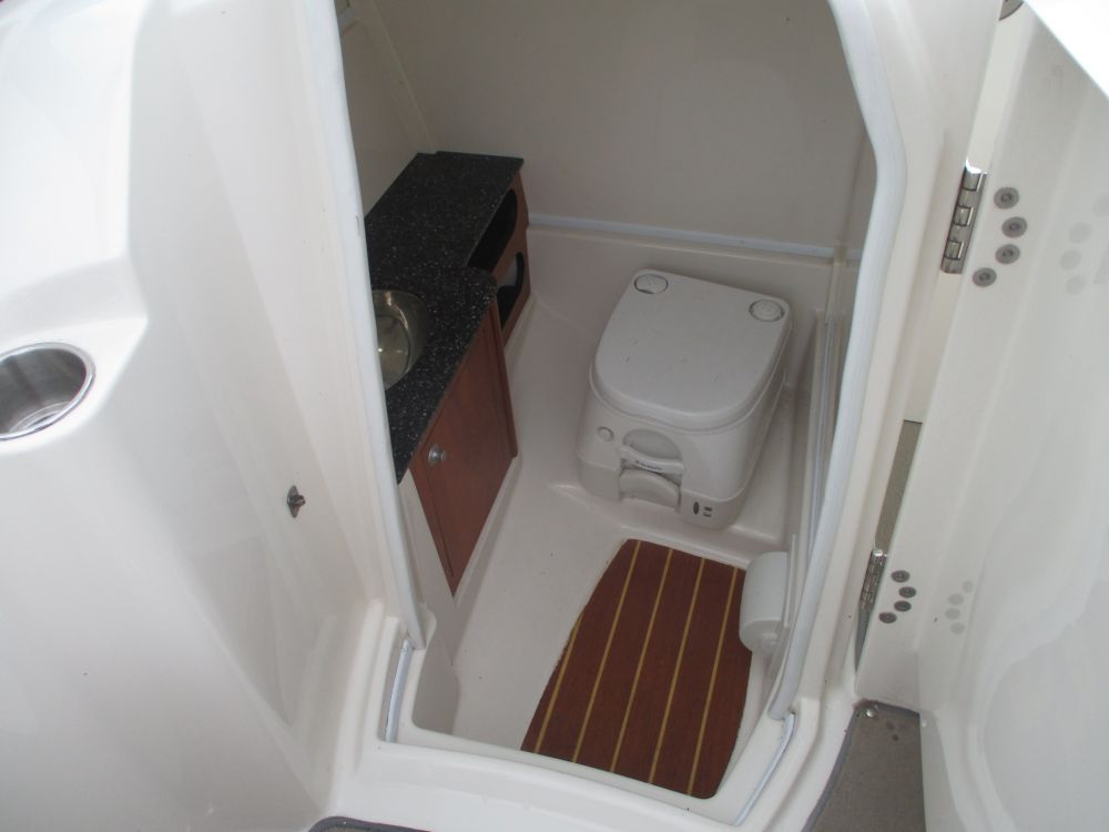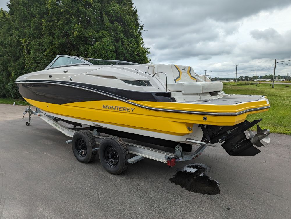 25'10", 5.7L MerCruiser 350MAG engine, convertible sun lounge, Bravo Three out drive, Electronic shift, stereo, toilet and sink, dual axle trailer (bill of sale only), 2-5/16" ball, starts and runs, has insurance claim history. Must call with questions or viewing, Item purchased with a damaged windshield and misc fiberglass damage that has been repaired. Boat has some upholstery flaws as pictured. 350. Extremely well laid out and roomy with power rear seat that extends to lounger