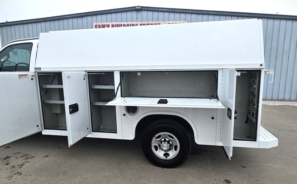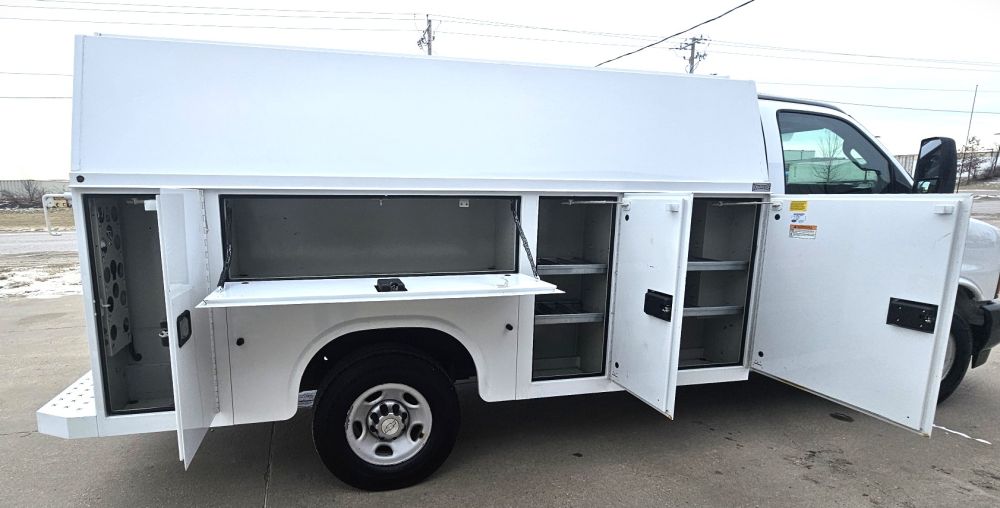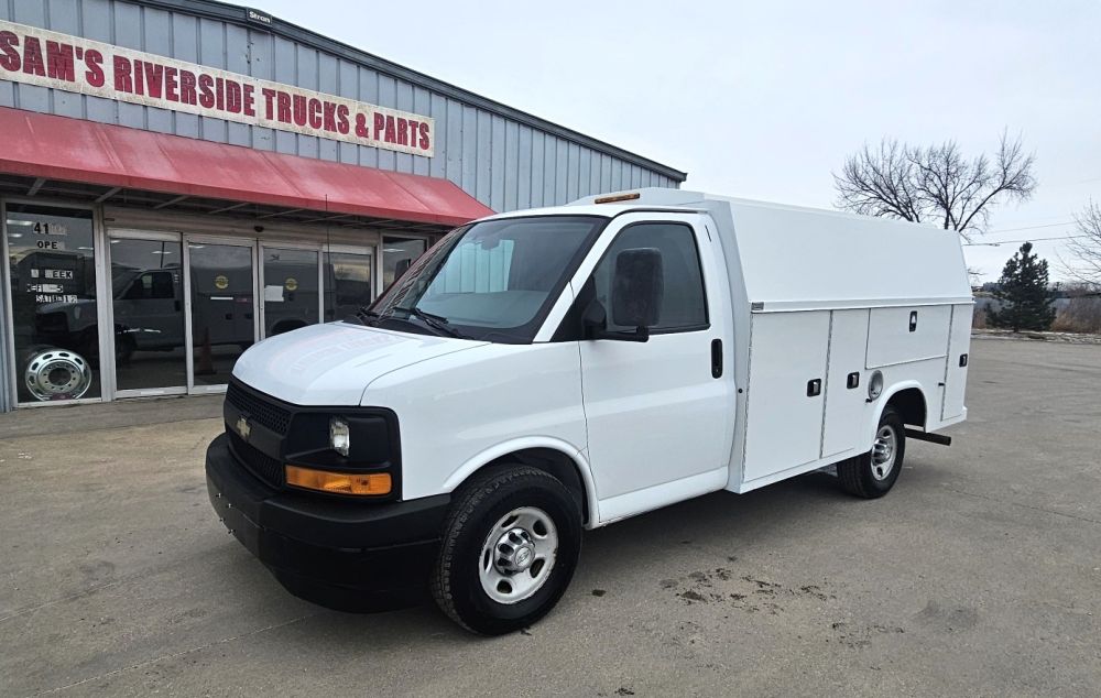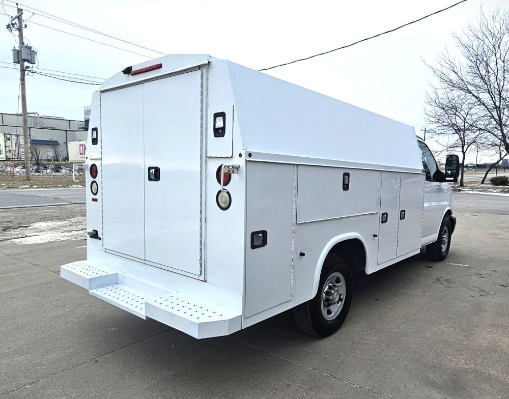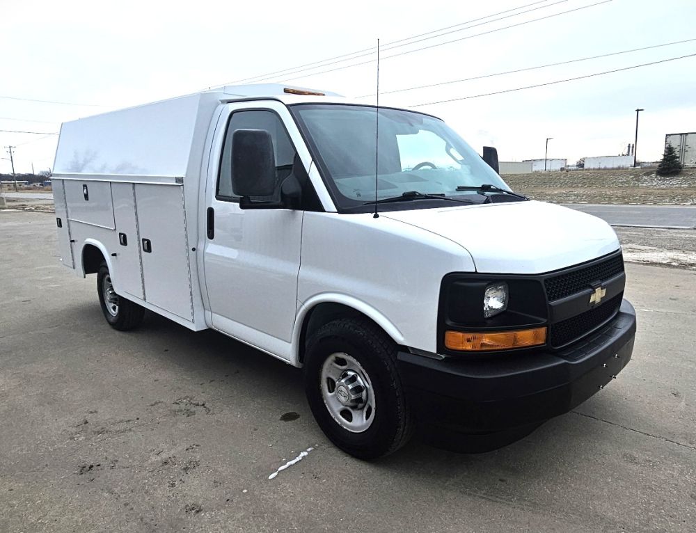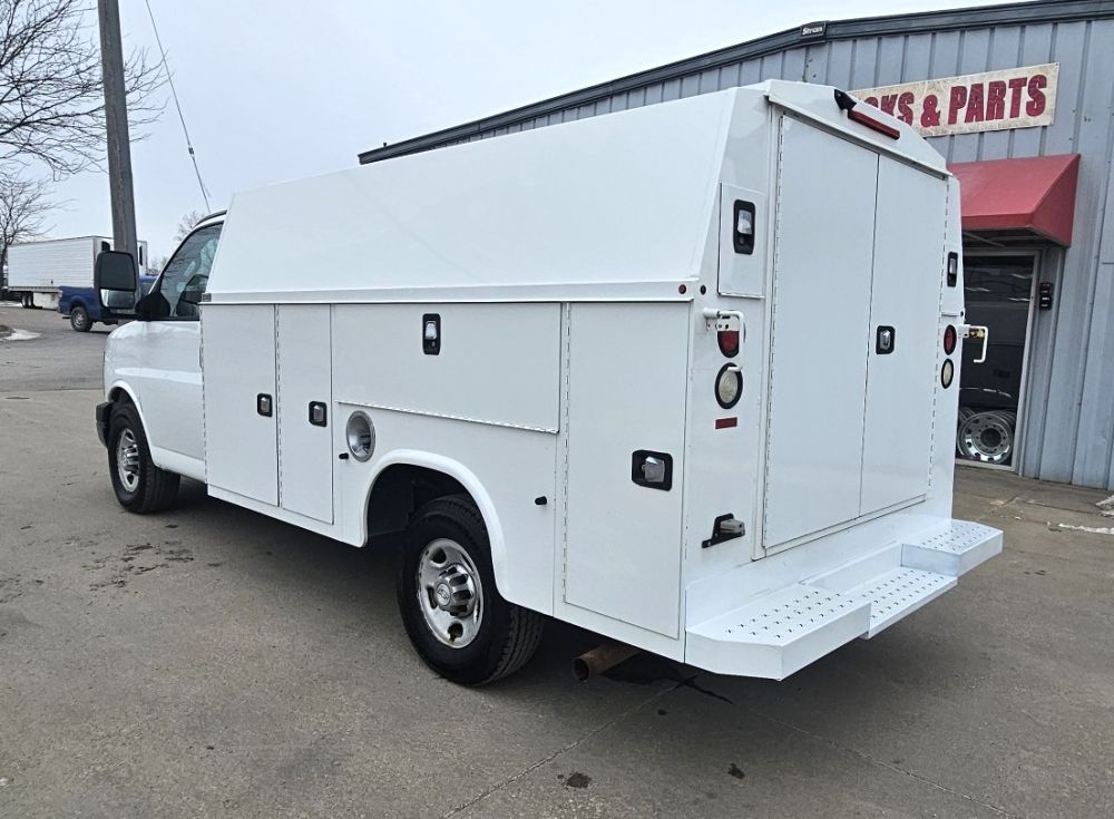2017 CHEVROLET EXPRESS G3500 KUV UTILITY SERVICE VAN , 6.0L V-8 GAS FLEX FUEL , AUTOMATIC , 245/75R16 TIRES 75 % , POWER WINDOWS AND LOCKS , REMOTE KEYLESS ENTRY , REAR VIEW CAMERA , 11 FT KNAPHEIDE KUV ENCLOSED SERVICE BODY GOOD TITLE , 137,895 ACTUAL MILES