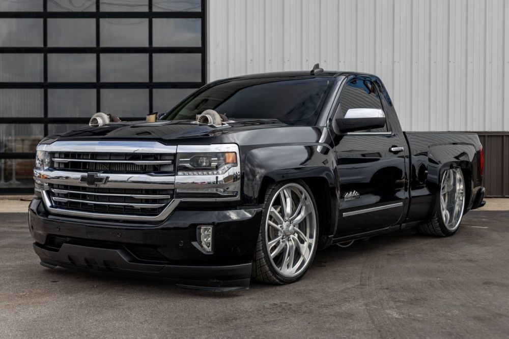 Custom built, twin turbo, single cab, high country conversion, custom sound system, dual hood exit exhaust, custom touchscreen, 24 inch wheels, boost gauges, heated and cooled leather seats, and more.