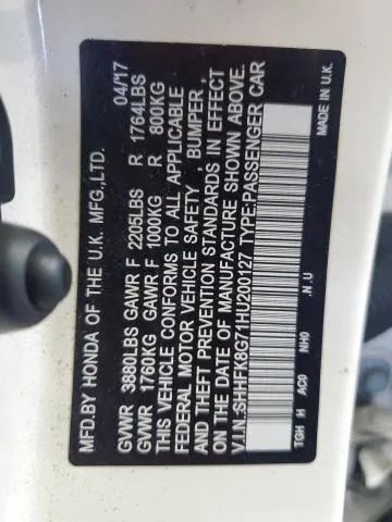 <p><strong><span style='font-family: Arial,Helvetica,sans-serif; font-size: medium;'>2017 Honda Civic Type R - Touring Hatchback Sedan 4D - FWD - SHHFK8G71HU200127