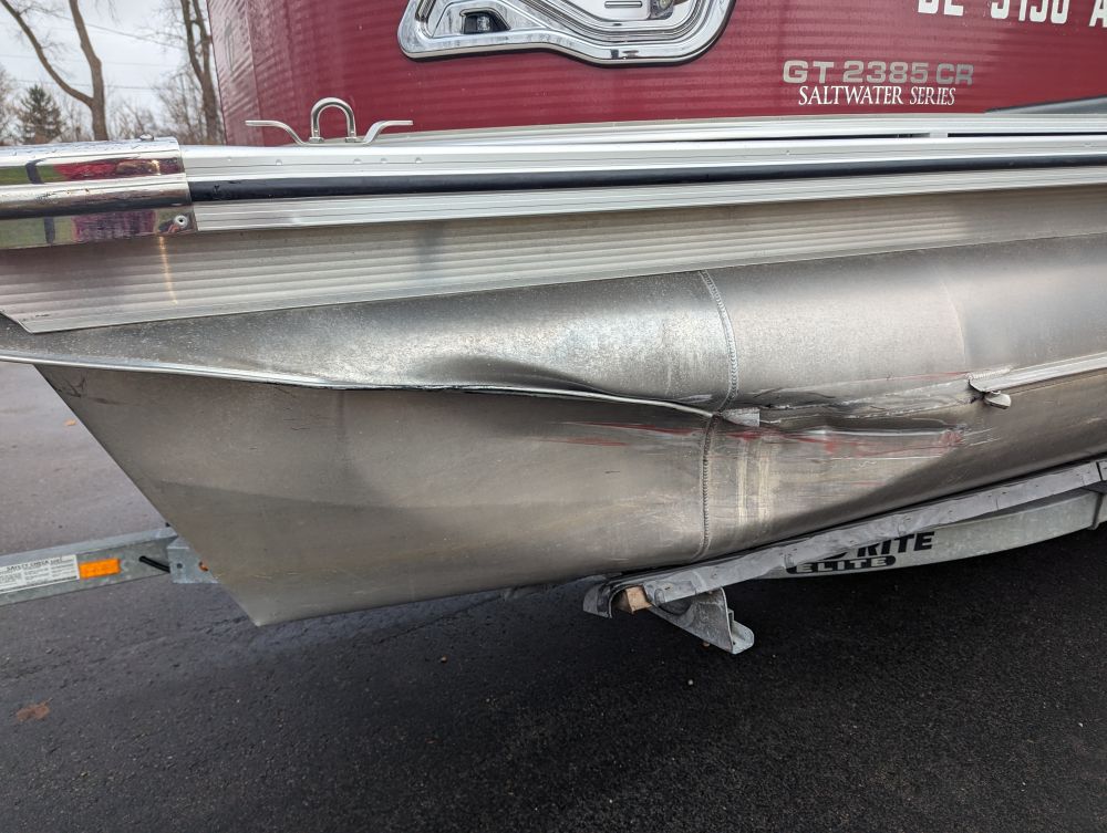 2107 Tahoe GT 2385 CR Saltwater series pontoon with Mercury 115 4 stroke - Left front pontoon is dented - details to follow