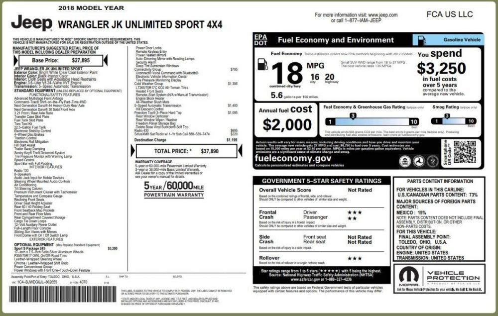 2018 Jeep Wrangler JK Unlimited Sport S 4x4