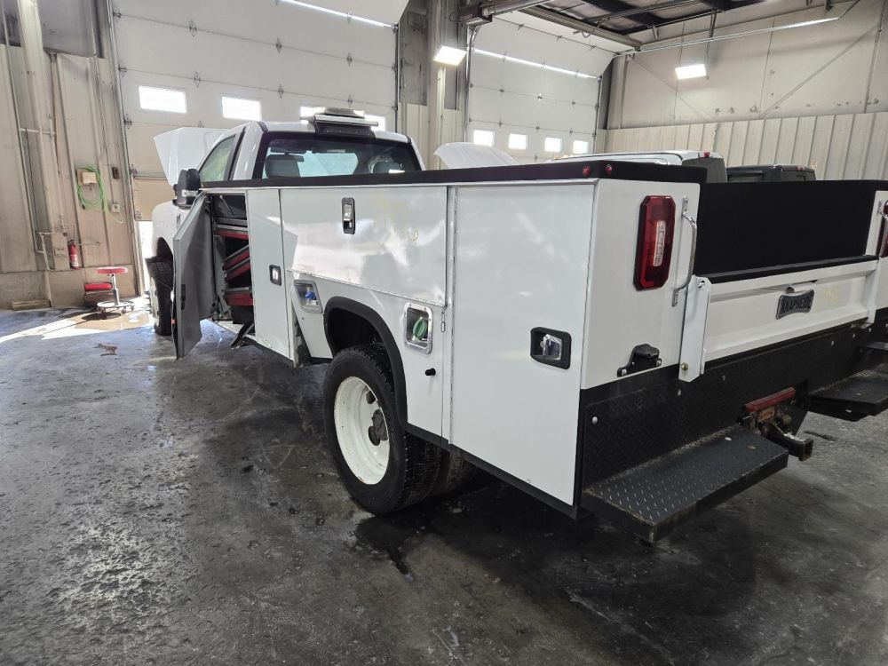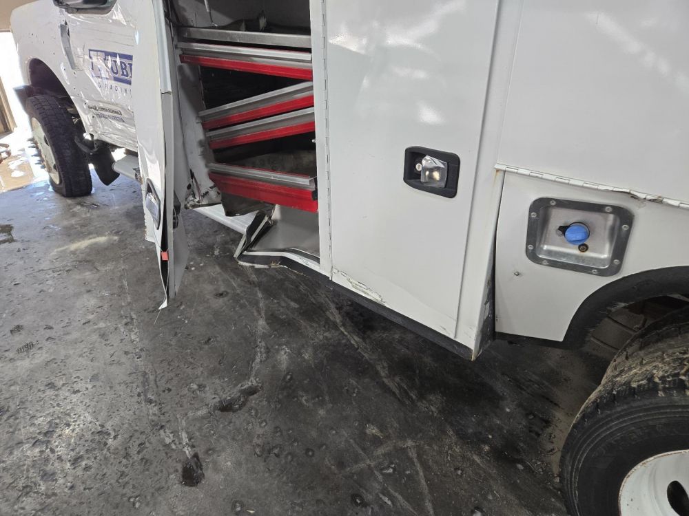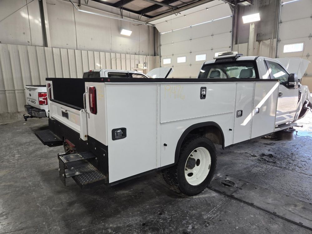 KNAPHEIDE WHITE UTILITY BED *FRONT DRV DAMAGE* 11'1' LENGTH 7'10" WIDTH 82" CAB TO AXLE 34" FRAME CAME OFF A 2018 F350SD CAB & CHASSIS