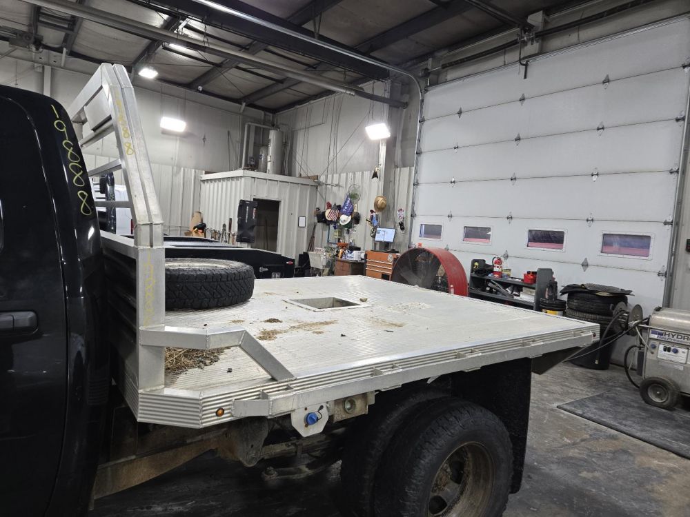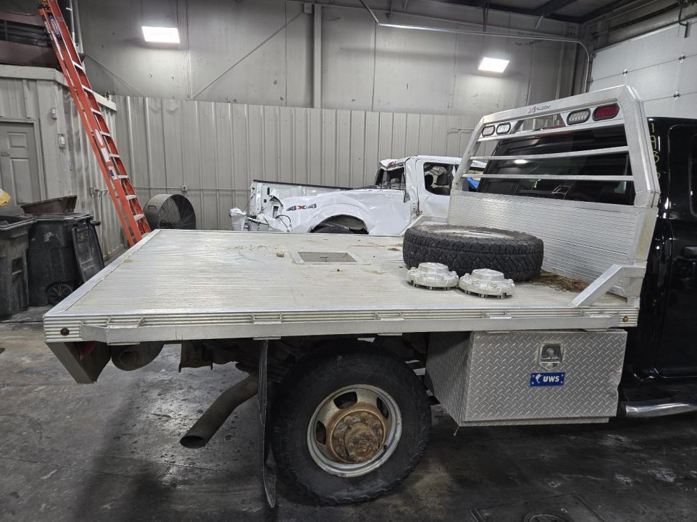ALCOM DRW ALUMINUM FLAT BED 8'3" LENGTH 7'8" WIDTH 4'10" CAB TO AXLE 42" FRAME CAME OFF A 2019 DODGE 3500 PICK UP