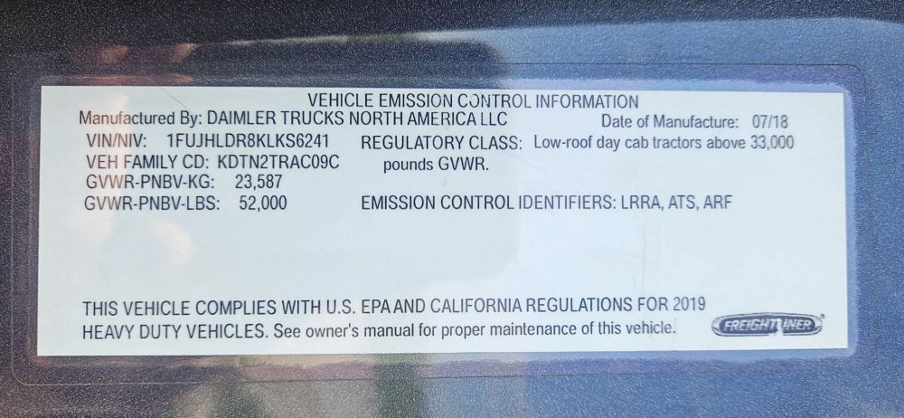 2019 FREIGHTLINER CASCADIA 126 DAY CAB TRACTOR