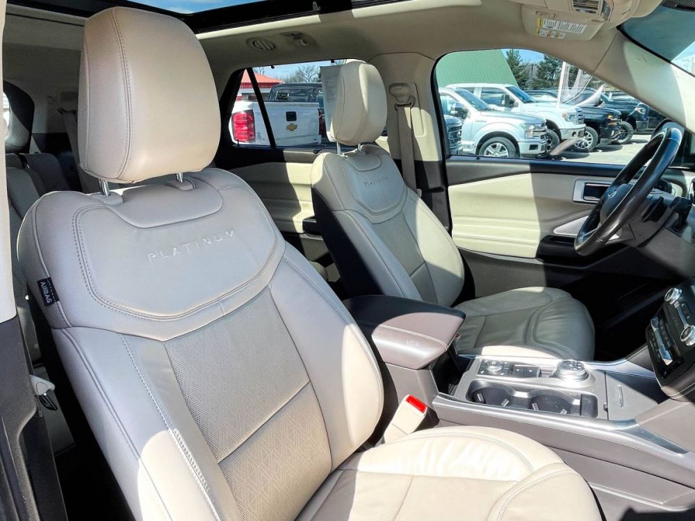 Wholesale Pricing & Discounted Price with Financing Package- Loaded Explorer Platinum 4x4. Extra clean inside and out with a comfortable leather interior that includes 3 rows for a total of 6 seats, heated and ventilated front seats, heated second row seats, a dual pane sun roof, and steering wheel mounted controls. Driver assist features include remote start, adaptive cruise control, and lane assist. Priced to sell. We make saving money very simple-the Best prices, Best Financing, and Best Service Contracts in the Midwest. Call or text DriveNation and Save Today. (573)-524-2400.