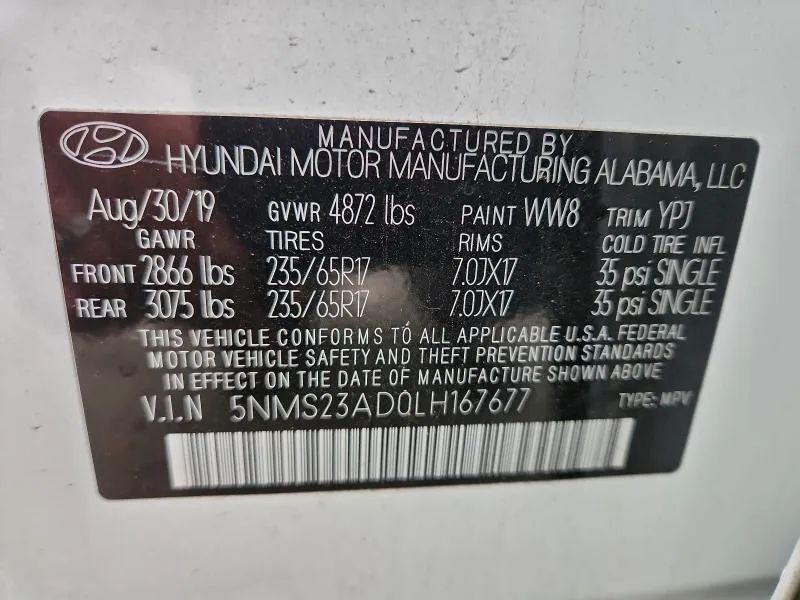 <p><strong><span style='font-family: Arial,Helvetica,sans-serif; font-size: medium;'>2020 Hyundai Santa Fe - SE Sport Utility 4D - FWD - 5NMS23AD0LH167677