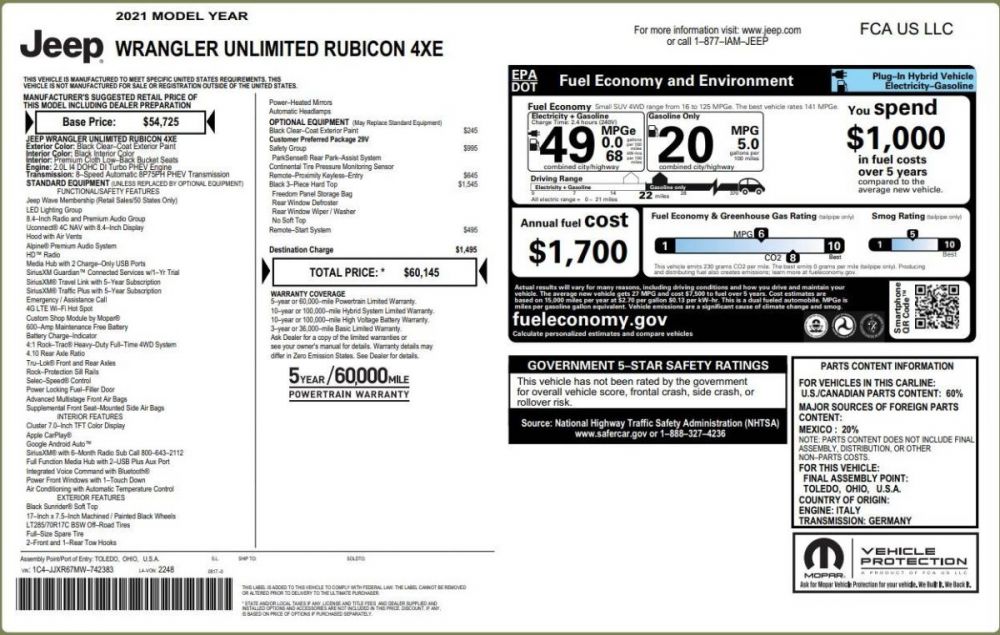2021 Jeep Wrangler Unlimited Rubicon 4xE 4x4