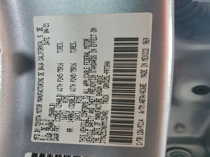 <p><strong><span style='font-family: Arial,Helvetica,sans-serif; font-size: medium;'>2021 Toyota Tacoma Double Cab - SR5 Pickup 4D 5 ft - 2WD - 3TMAZ5CN6MM152401