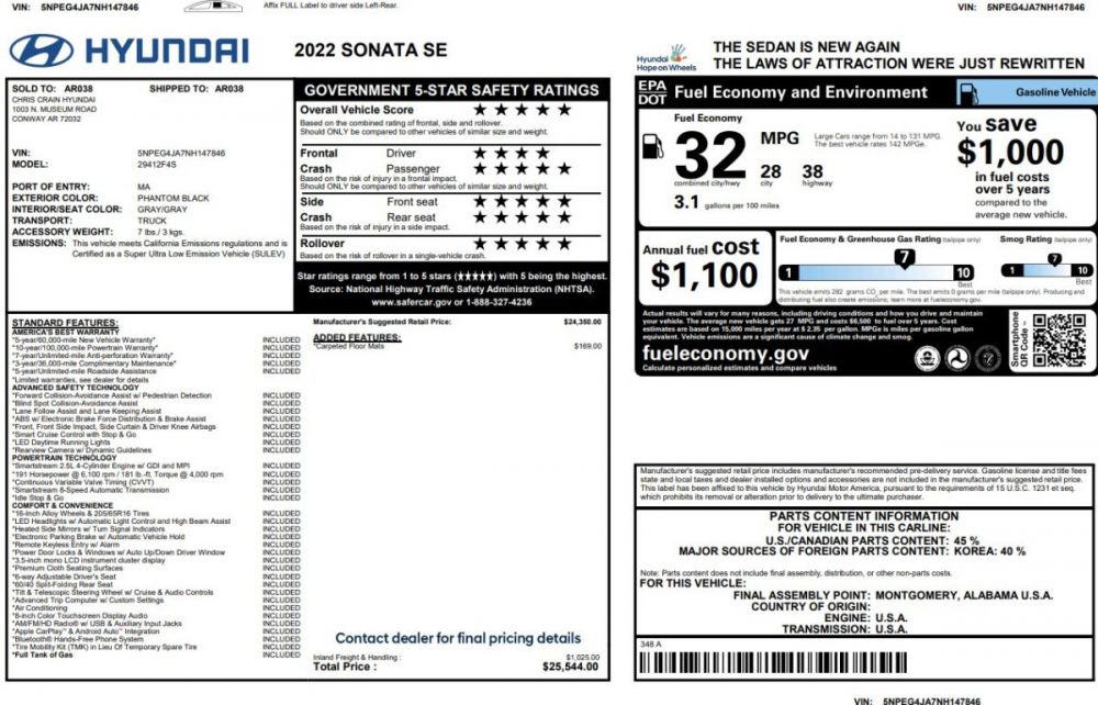 2022 Hyundai SONATA SE