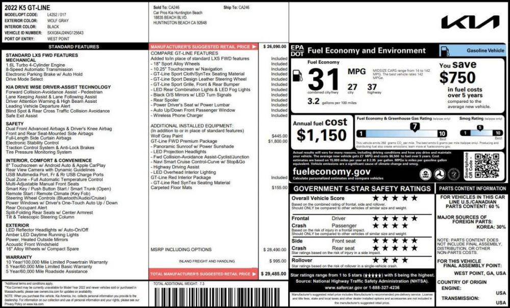 2022 Kia K5 GT-Line