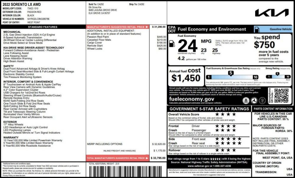 2022 Kia Sorento LX AWD