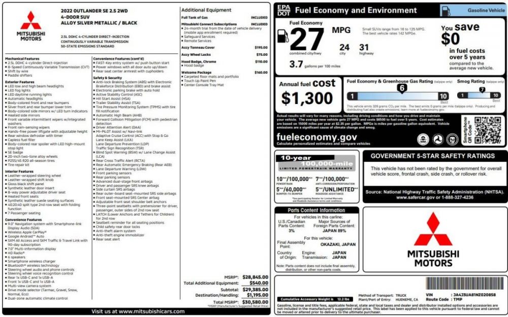 2022 Mitsubishi Outlander SE