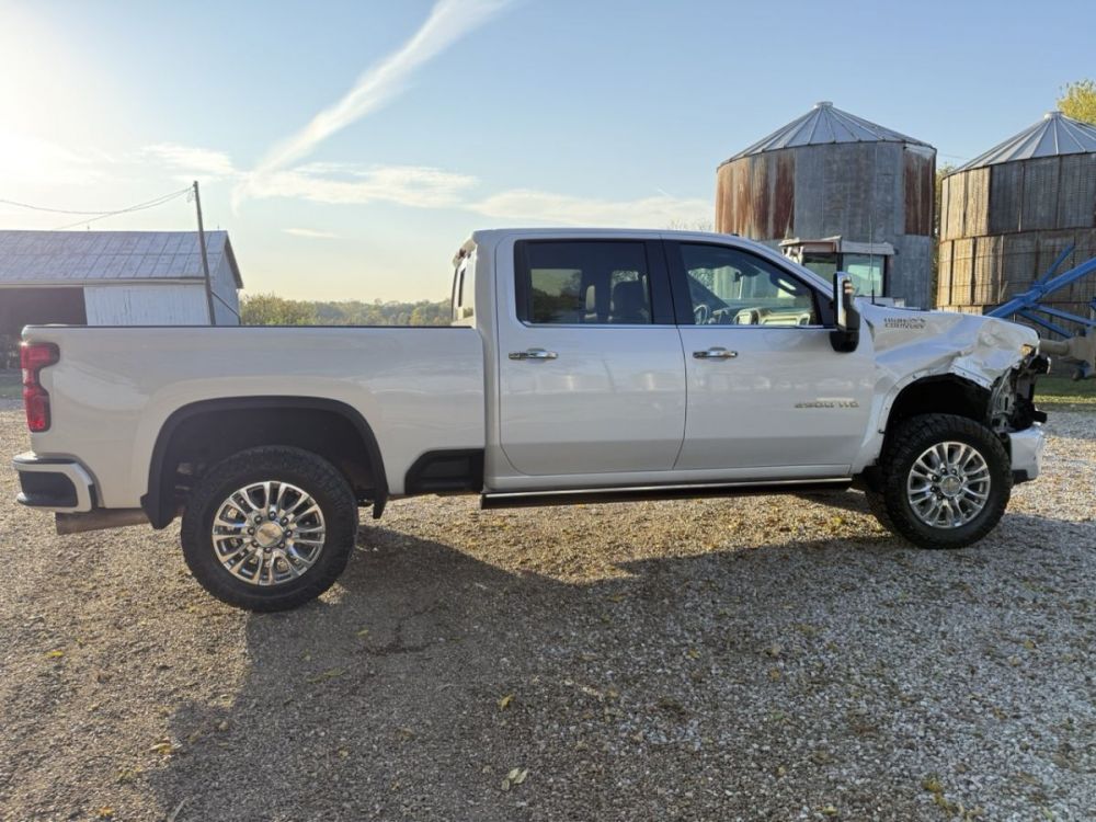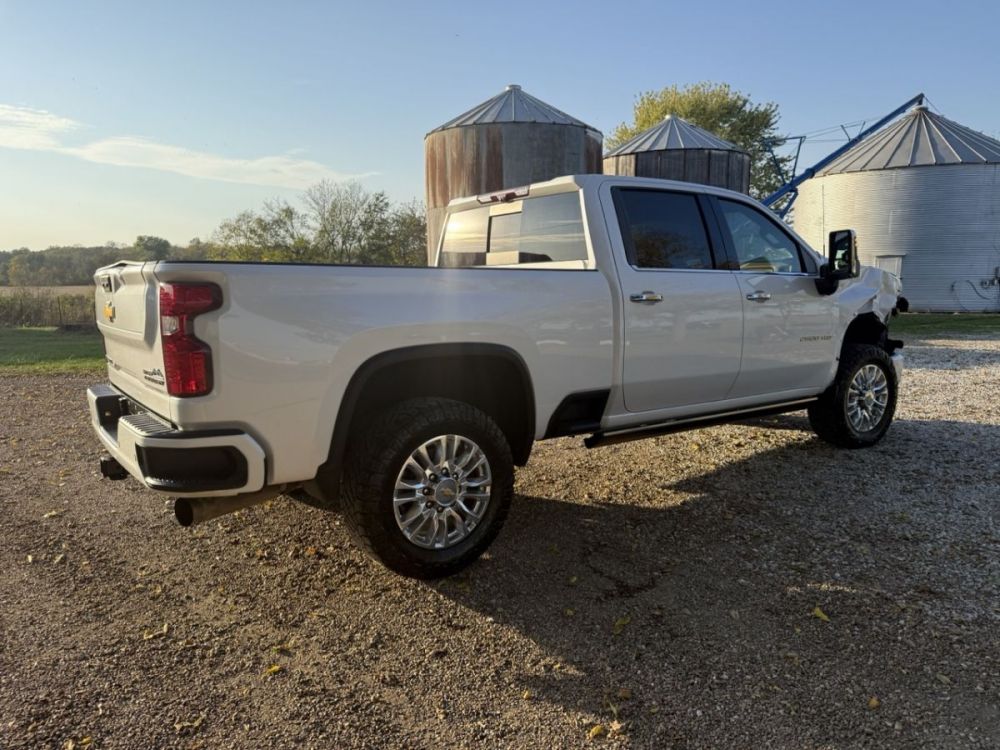 Runs and lots of drives with salvage title and good airbags. Loaded 2023 High Country with 6.6L Duramax Diesel, 10-Speed automatic, 4 wheel drive, navigation, sunroof, heated/cooled leather seats, heated rear seats, heads-up display, Bose stereo, multi pro tailgate, power running boards, factory sprayed bed liner, 5th wheel prep package, surround view cameras, 20” wheels, and more. Very clean southern rust free truck!