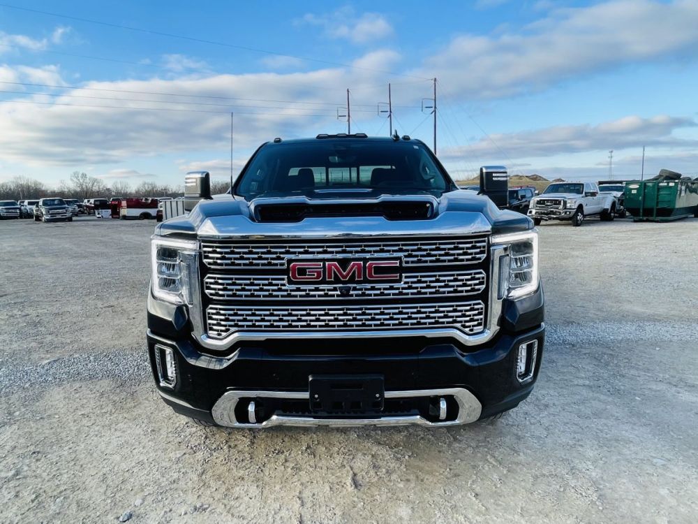 CLEAR TITLE. Ready to go. Previous damage on right bedside from gooseneck trailer. Replaced with new GM bed. Loaded Denali HD with 6.6L Duramax Diesel, 10-Speed Allison Automatic, 4 wheel drive, Navigation, Sunroof, Heated/Cooled leather, Surround view cameras, Bose stereo, Technology package, Rear view mirror camera, Gooseneck package, Aluminum wheels. LED Lights. For more info call Sales at 573-785-7515 Ext. 1