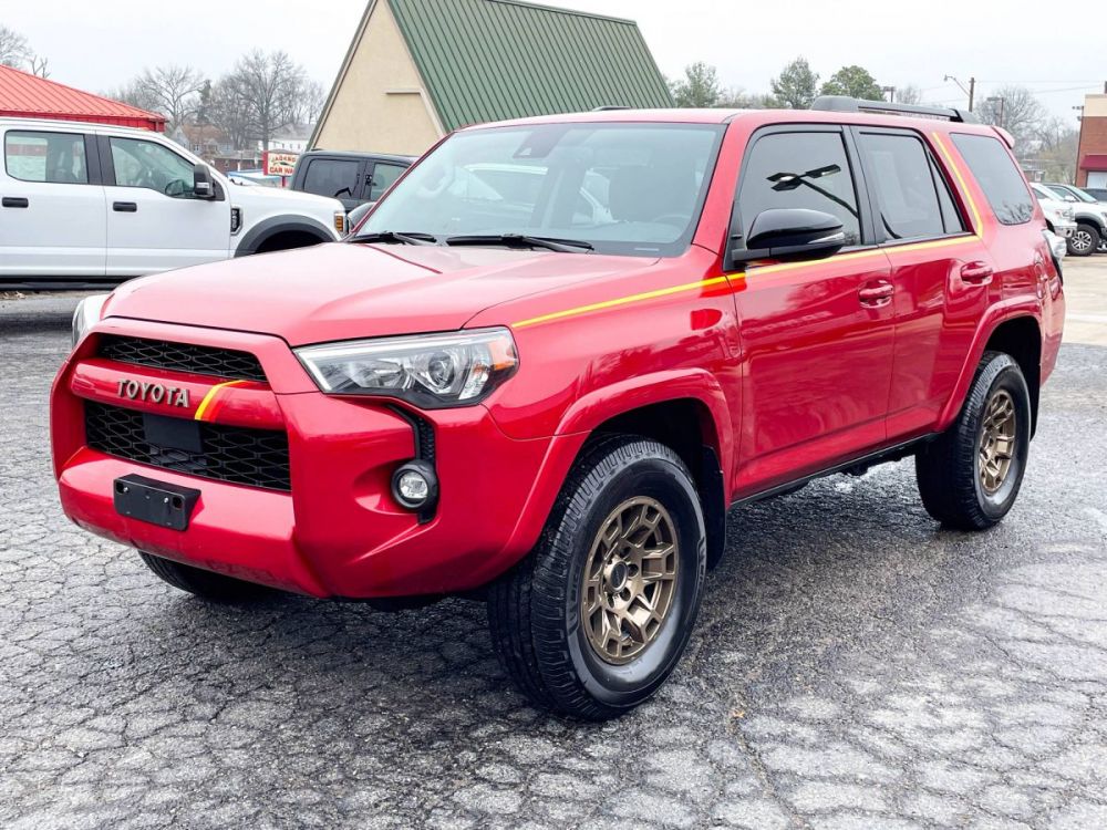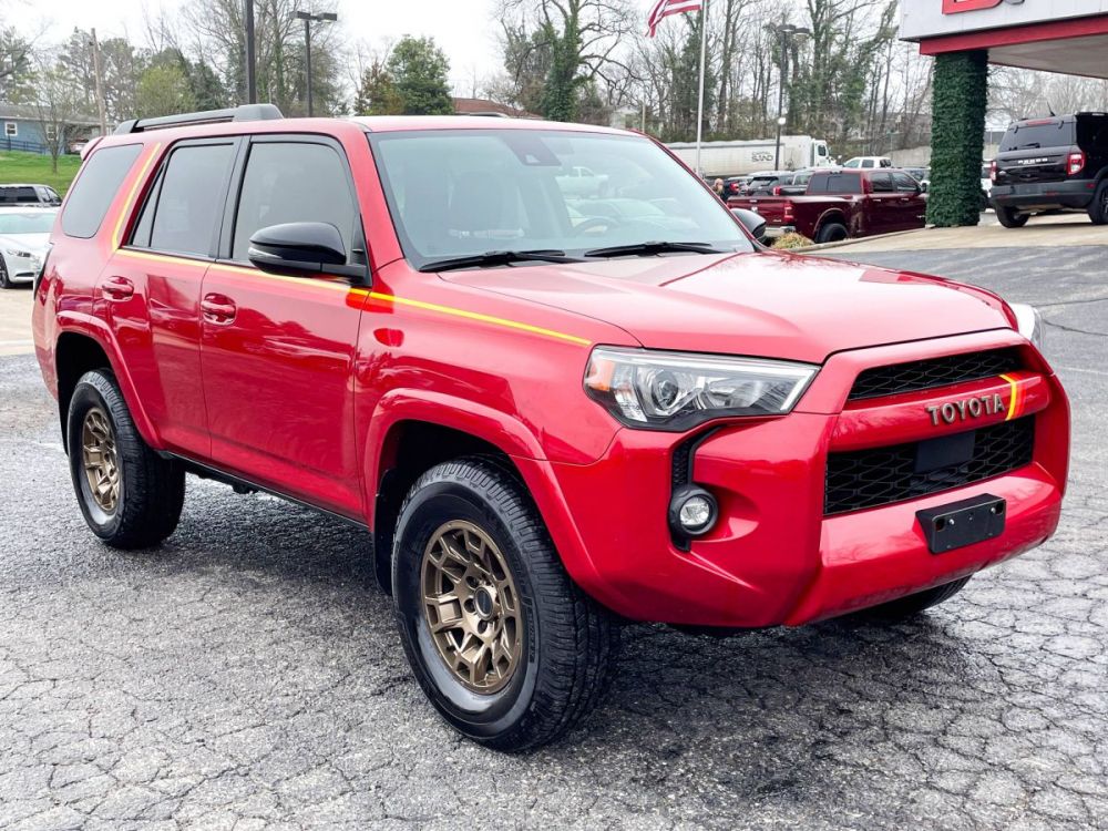 Wholesale Pricing & Discounted Price with Financing Package- Loaded 4Runner 40TH Anniversary Special Edition 4x4. Extra clean inside and out with a comfortable and spacious leather interior that includes an 8 inch infotainment screen with navigation, steering wheel mounted controls, a moon roof, Apple CarPlay, and Android Auto. Driver assist features include adaptive cruise control, lane alert, blind spot alert, and voice command. One owner vehicle with no accidents according to the Carfax. Priced to sell. We make saving money very simple-the Best prices, Best Financing, and Best Service Contracts in the Midwest. Call or text DriveNation and Save Today. (573)-524-2400.