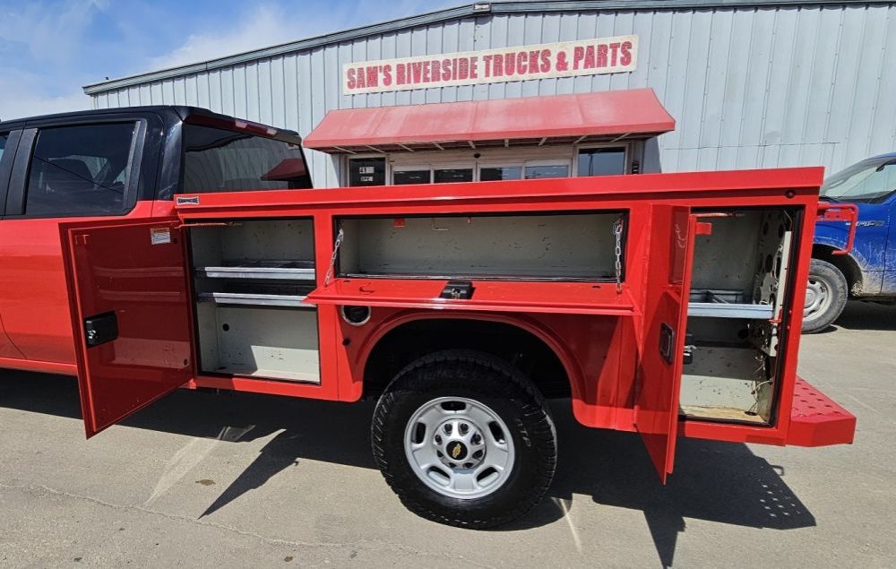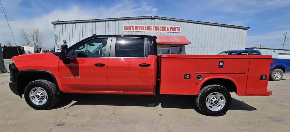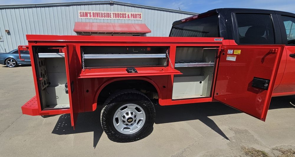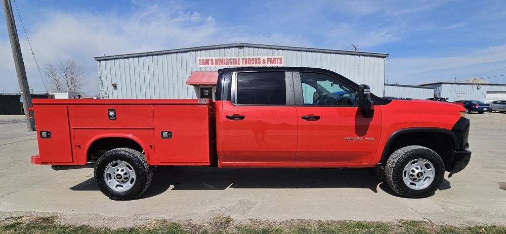 2024 CHEVROLET SILVERADO 2500 CREW CAB WT 2WD , 6.6L V-8 GAS , ALLISON 10 SPEED AUTOMATIC , 3.73 AUTO LOCKING REAR DIFF , REAR VIEW CAMERA , REMOTE KEYLESS ENTRY WITH PUSH BUTTON START , POWER WINDOWS , LOCKS AND MIRRORS , 10,300 GVW , KAPHEIDE 8 FT SERVICE BODY , REBUILT TITLE , ONLY 44,874 MILES