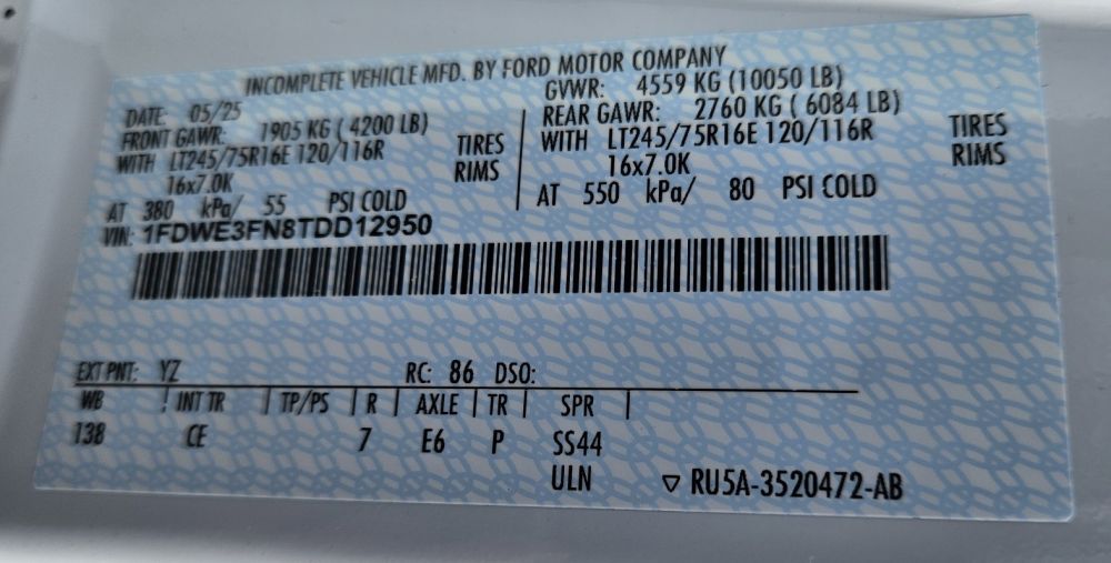 2026 FORD E350 CUTAWAY KUV BODY , 7.3L V-8 GAS ENGINE , ELECTRIC 6 SPEED AUTOMATIC W/TOW-HAUL , LT 245/75R16 TIRES LIKE NEW , TWIN I-BEAM INDEPENDENT FRONT SUSPENSION , ELECTRONIC STABILITY CONTROL , 4.10 LIMITED SLIP DIFF , REAR VIEW CAMERA , 10,050 GVW , TRAILER TOWING PACKAGE , RECEIVER HITCH , REBUILT TITLE , ONLY 190 ACTUAL MILES ,